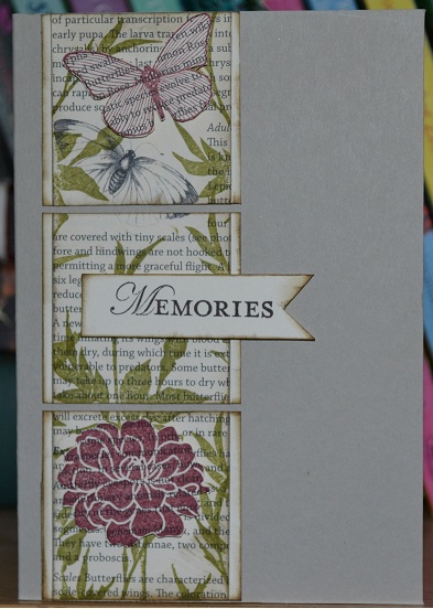 I then went mad with the sponge and distressed the edges the card looked a little blank and I had wanted the butterfly from the patterned paper to be more prominent but decided it wasn't working for me so added my own stamped in cherry cobbler.